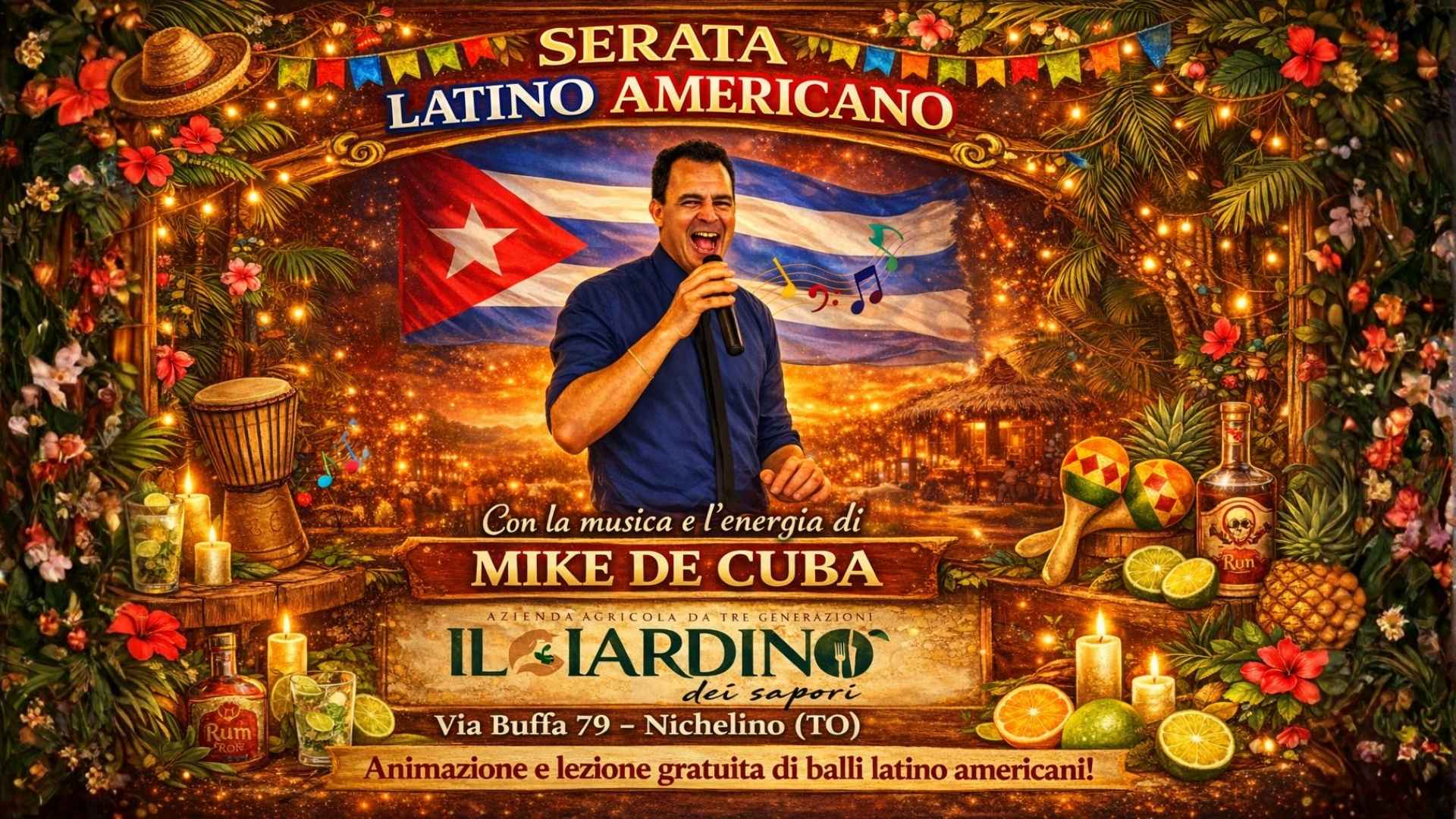 Cena, musica live con Mike De Cuba e lezione di balli latino americani.